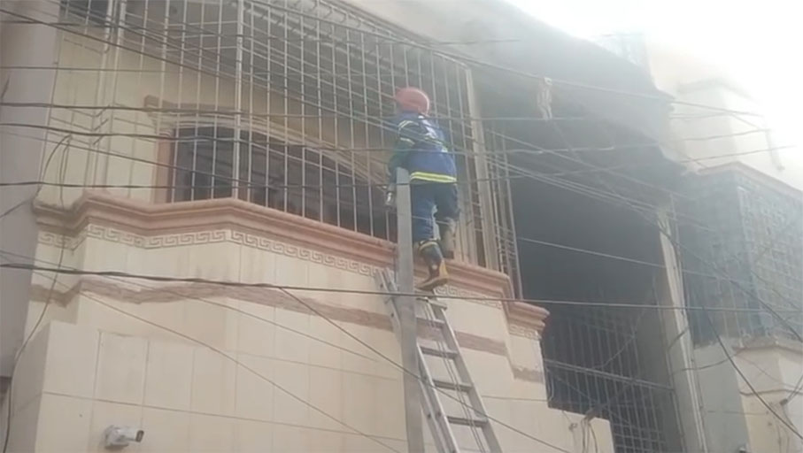 ريسڪيو عملي موجب باهه شارٽ سرڪٽ سبب لڳي جنهن اک ڇنڀ سان سڄي گهر کي لپيٽ ۾ آڻي ڇڏيو. هن وقت تائين 3 ڄڻن جا لاش ڪڍيا ويا آهن جن ۾ 2 عورتون ۽ هڪ مرد شامل آهن. ڪولنگ جو عمل جاري آهي.